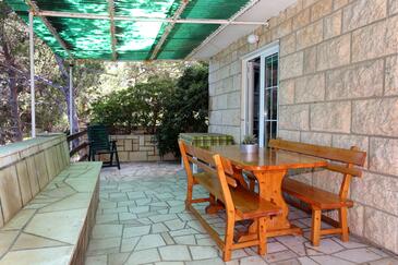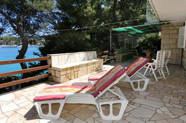 Ferienwohnung bietet Platz für 4 Gäste. Die Betten sind in Schlafzimmern, die es 2 gibt, innerhalb einer Gesamtfläche von 59m2, angeordnet. Die Gäste haben eine eigene Terrasse zur Verfügung, auf der sie in warmen Sommernächten genießen können. Das Apartment bietet Meerblick. Es ist erlaubt, Speisen auf dem Gemeinschafts-Grill vorzubereiten.