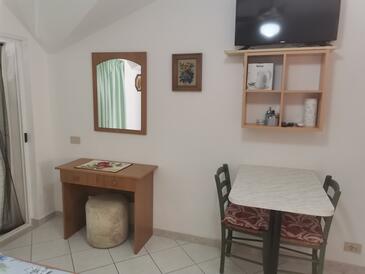 Ferienwohnung bietet Platz für 5 Gäste. Die Betten sind in Schlafzimmern, die es 1 gibt, und in Wohnzimmer, innerhalb einer Gesamtfläche von 35m2, angeordnet. Die Gäste haben eine eigene Terrasse zur Verfügung, auf der sie in warmen Sommernächten genießen können. Das Apartment bietet Meerblick. Es ist erlaubt, Speisen auf dem Gemeinschafts-Grill vorzubereiten.