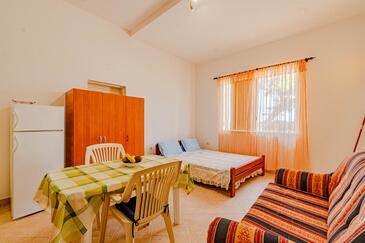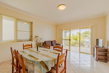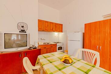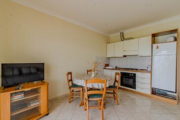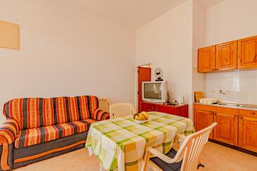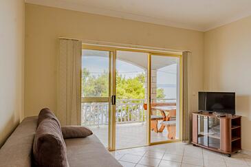 Ferienwohnung bietet Platz für 4 Gäste. Die Betten sind in Schlafzimmern, die es 1 gibt, und in Wohnzimmer, innerhalb einer Gesamtfläche von 48m2, angeordnet. Die Gäste haben eine eigene Terrasse zur Verfügung, auf der sie in warmen Sommernächten genießen können. Das Apartment bietet Meerblick. Es ist erlaubt, Speisen auf dem Gemeinschafts-Grill vorzubereiten.