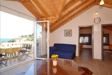 Haus bietet Platz für 8 Gäste. Die Betten sind in Schlafzimmern, die es 4 gibt, innerhalb einer Gesamtfläche von 110m2, angeordnet. Die Gäste haben eine eigene Terrasse zur Verfügung, auf der sie in warmen Sommernächten genießen können. Das Haus bietet Meerblick. Während ihres Aufenthalts können sich Gäste im privaten Schwimmbad entspannen. Räume der gebuchten Unterkunftseinheit werden nicht in eine Ganze verbunden.
