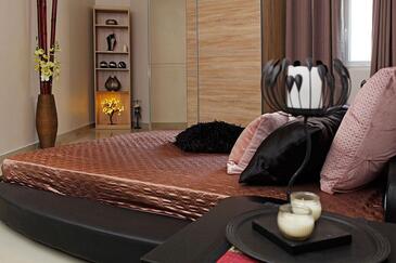 Haus bietet Platz für 6 Gäste. Die Betten sind in Schlafzimmern, die es 3 gibt, innerhalb einer Gesamtfläche von 94m2, angeordnet. Die Gäste haben eine eigene Terrasse zur Verfügung, auf der sie in warmen Sommernächten genießen können. Das Haus bietet Meerblick. Es ist erlaubt, Speisen auf dem Gemeinschafts-Grill vorzubereiten. In der Unterkunftseinheit besteht die Möglichkeit des Mitbringens von Haustieren, und die Dienstleistung ist im Preis der Unterkunft enthalten.