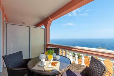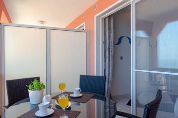 Ferienwohnung bietet Platz für 4 Gäste. Die Betten sind in Schlafzimmern, die es 1 gibt, und in Wohnzimmer, innerhalb einer Gesamtfläche von 35m2, angeordnet. Die Gäste haben einen eigenen Balkon zur Verfügung, auf der sie in warmen Sommernächten genießen können. Das Apartment bietet Meerblick. Es ist erlaubt, Speisen auf dem Gemeinschafts-Grill vorzubereiten.
