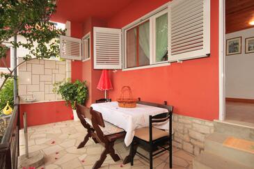Ferienwohnung bietet Platz für 6 Gäste. Die Betten sind in Schlafzimmern, die es 2 gibt, und in Esszimmer, innerhalb einer Gesamtfläche von 51m2, angeordnet. Die Gäste haben eine eigene Terrasse zur Verfügung, auf der sie in warmen Sommernächten genießen können. Das Apartment bietet Meerblick. Es ist erlaubt, Speisen auf dem Gemeinschafts-Grill vorzubereiten.