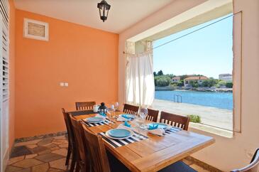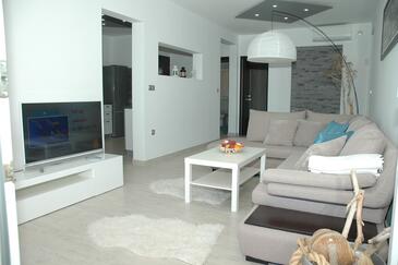 Ferienwohnung bietet Platz für 4 Gäste. Die Betten sind in Schlafzimmern, die es 2 gibt, innerhalb einer Gesamtfläche von 68m2, angeordnet. Die Gäste haben eine eigene Terrasse zur Verfügung, auf der sie in warmen Sommernächten genießen können. Das Apartment bietet Meerblick. Es ist erlaubt, Speisen auf dem Gemeinschafts-Grill vorzubereiten.