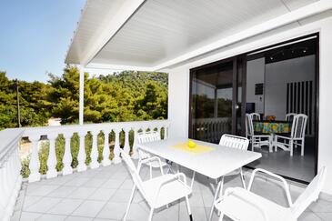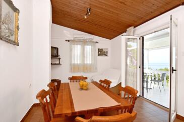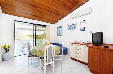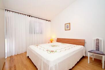 Ferienwohnung bietet Platz für 5 Gäste. Die Betten sind in Schlafzimmern, die es 2 gibt, innerhalb einer Gesamtfläche von 51m2, angeordnet. Die Gäste haben eine eigene Terrasse zur Verfügung, auf der sie in warmen Sommernächten genießen können. Das Apartment bietet Meerblick. Es ist erlaubt, Speisen auf dem Gemeinschafts-Grill vorzubereiten.
