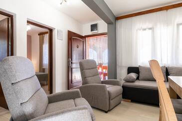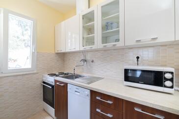 Haus bietet Platz für 6 Gäste. Die Betten sind in Schlafzimmern, die es 3 gibt, innerhalb einer Gesamtfläche von 54m2, angeordnet. Die Gäste haben eine eigene Terrasse zur Verfügung, auf der sie in warmen Sommernächten genießen können. Das Haus bietet Meerblick. Für vollen Genuss und Entspannung gibt es einen privaten Grill für Gäste dieser Unterkunft.