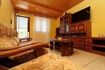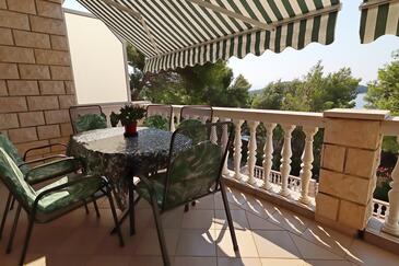 Ferienwohnung bietet Platz für 5 Gäste. Die Betten sind in Schlafzimmern, die es 2 gibt, innerhalb einer Gesamtfläche von 77m2, angeordnet. Die Gäste haben eine eigene Terrasse zur Verfügung, auf der sie in warmen Sommernächten genießen können. Das Apartment bietet Meerblick. Es ist erlaubt, Speisen auf dem Gemeinschafts-Grill vorzubereiten.