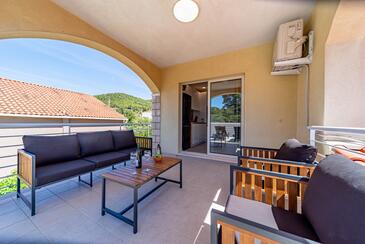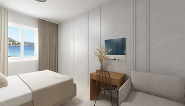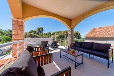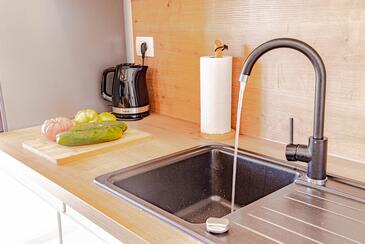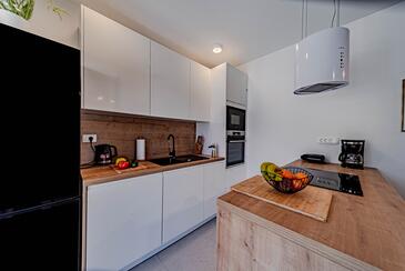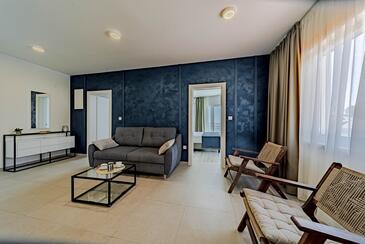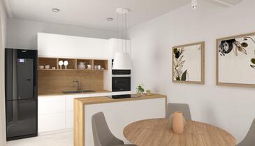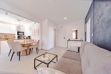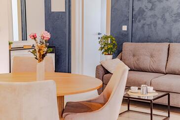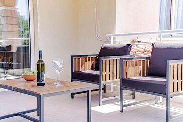 Ferienwohnung bietet Platz für 5 Gäste. Die Betten sind in Schlafzimmern, die es 2 gibt, und in Wohnzimmer, innerhalb einer Gesamtfläche von 54m2, angeordnet. Die Gäste haben eine eigene Terrasse zur Verfügung, auf der sie in warmen Sommernächten genießen können. Das Apartment bietet Meerblick. Es ist erlaubt, Speisen auf dem Gemeinschafts-Grill vorzubereiten. In der Unterkunftseinheit besteht die Möglichkeit des Mitbringens von Haustieren gegen Aufpreis.