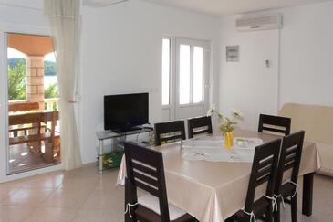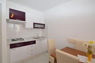 Ferienwohnung bietet Platz für 5 Gäste. Die Betten sind in Schlafzimmern, die es 2 gibt, und in Wohnzimmer, innerhalb einer Gesamtfläche von 55m2, angeordnet. Die Gäste haben eine eigene Terrasse zur Verfügung, auf der sie in warmen Sommernächten genießen können. Das Apartment bietet Meerblick. Es ist erlaubt, Speisen auf dem Gemeinschafts-Grill vorzubereiten. In der Unterkunftseinheit besteht die Möglichkeit des Mitbringens von Haustieren gegen Aufpreis.