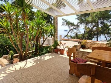 Ferienwohnung bietet Platz für 4 Gäste. Die Betten sind in Schlafzimmern, die es 2 gibt, innerhalb einer Gesamtfläche von 56m2, angeordnet. Die Gäste haben eine eigene Terrasse zur Verfügung, auf der sie in warmen Sommernächten genießen können. Das Apartment bietet Meerblick. Es ist erlaubt, Speisen auf dem Gemeinschafts-Grill vorzubereiten. In der Unterkunftseinheit besteht die Möglichkeit des Mitbringens von Haustieren, und die Dienstleistung ist im Preis der Unterkunft enthalten.
