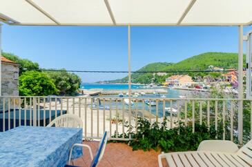 Ferienwohnung bietet Platz für 4 Gäste. Die Betten sind in Schlafzimmern, die es 2 gibt, innerhalb einer Gesamtfläche von 31m2, angeordnet. Die Gäste haben eine eigene Terrasse zur Verfügung, auf der sie in warmen Sommernächten genießen können. Das Apartment bietet Meerblick. Es ist erlaubt, Speisen auf dem Gemeinschafts-Grill vorzubereiten.