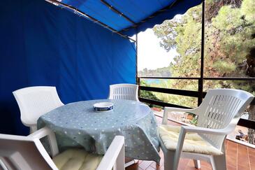 Ferienwohnung bietet Platz für 4 Gäste. Die Betten sind in Schlafzimmern, die es 2 gibt, innerhalb einer Gesamtfläche von 46m2, angeordnet. Die Gäste haben eine eigene Terrasse zur Verfügung, auf der sie in warmen Sommernächten genießen können. Das Apartment bietet Meerblick. Es ist erlaubt, Speisen auf dem Gemeinschafts-Grill vorzubereiten. In der Unterkunftseinheit besteht die Möglichkeit des Mitbringens von Haustieren gegen Aufpreis.