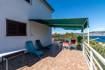 Ferienwohnung bietet Platz für 6 Gäste. Die Betten sind in Schlafzimmern, die es 3 gibt, innerhalb einer Gesamtfläche von 71m2, angeordnet. Die Gäste haben eine eigene Terrasse zur Verfügung, auf der sie in warmen Sommernächten genießen können. Das Apartment bietet Meerblick. Es ist erlaubt, Speisen auf dem Gemeinschafts-Grill vorzubereiten.