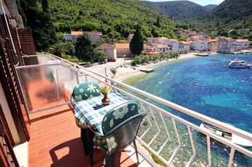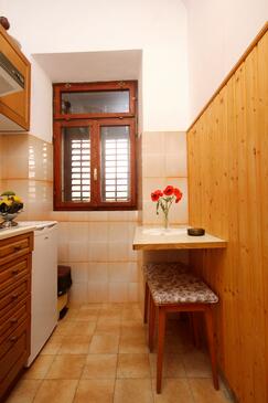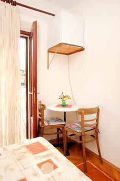 Studio bietet Platz für 3 Gäste. Die Betten sind in Schlafzimmern, die es 1 gibt, und in Wohnzimmer, innerhalb einer Gesamtfläche von 31m2, angeordnet. Die Gäste haben einen eigenen Balkon zur Verfügung, auf der sie in warmen Sommernächten genießen können. Das Studio-Apartment bietet Meerblick. Es ist erlaubt, Speisen auf dem Gemeinschafts-Grill vorzubereiten.