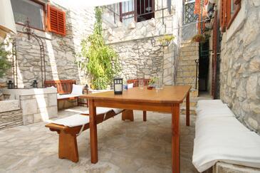 Haus bietet Platz für 6 Gäste. Die Betten sind in Schlafzimmern, die es 3 gibt, innerhalb einer Gesamtfläche von 95m2, angeordnet. Die Gäste haben eine eigene Terrasse zur Verfügung, auf der sie in warmen Sommernächten genießen können. Das Haus bietet Meerblick. Für vollen Genuss und Entspannung gibt es einen privaten Grill für Gäste dieser Unterkunft. Während ihres Aufenthalts können sich Gäste im privaten Schwimmbad entspannen. In der Unterkunftseinheit besteht die Möglichkeit des Mitbringens von Haustieren gegen Aufpreis. In der gebuchten Unterkunftseinheit zahlt man am Ort ein Depositum ( der Preis ist an der Internetseite angeführt ).