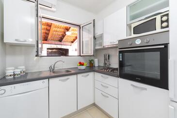 Haus bietet Platz für 10 Gäste. Die Betten sind in Schlafzimmern, die es 5 gibt, innerhalb einer Gesamtfläche von 102m2, angeordnet. Die Gäste haben eine eigene Terrasse zur Verfügung, auf der sie in warmen Sommernächten genießen können. Das Haus bietet Meerblick. Für vollen Genuss und Entspannung gibt es einen privaten Grill für Gäste dieser Unterkunft.