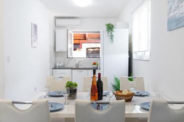 Haus bietet Platz für 10 Gäste. Die Betten sind in Schlafzimmern, die es 5 gibt, innerhalb einer Gesamtfläche von 102m2, angeordnet. Die Gäste haben eine eigene Terrasse zur Verfügung, auf der sie in warmen Sommernächten genießen können. Das Haus bietet Meerblick. Für vollen Genuss und Entspannung gibt es einen privaten Grill für Gäste dieser Unterkunft.