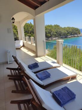 Haus bietet Platz für 8 Gäste. Die Betten sind in Schlafzimmern, die es 4 gibt, innerhalb einer Gesamtfläche von 250m2, angeordnet. Die Gäste haben eine eigene Terrasse zur Verfügung, auf der sie in warmen Sommernächten genießen können. Das Haus bietet Meerblick. Für vollen Genuss und Entspannung gibt es einen privaten Grill für Gäste dieser Unterkunft.