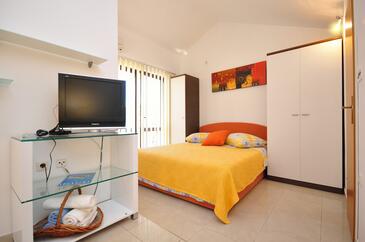 Studio bietet Platz für 2 Gäste. Die Betten sind in Schlafzimmern, die es 1 gibt, innerhalb einer Gesamtfläche von 19m2, angeordnet. Die Gäste haben einen eigenen Balkon zur Verfügung, auf der sie in warmen Sommernächten genießen können. Das Studio-Apartment bietet Meerblick. Es ist erlaubt, Speisen auf dem Gemeinschafts-Grill vorzubereiten.