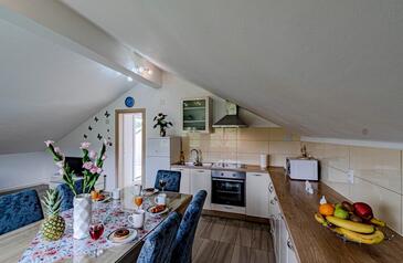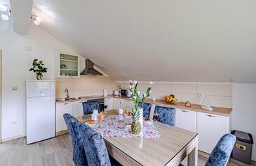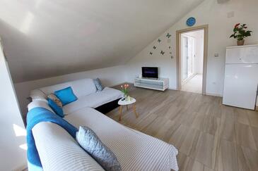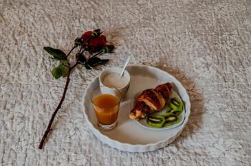 Ferienwohnung bietet Platz für 6 Gäste. Die Betten sind in Schlafzimmern, die es 2 gibt, und in Wohnzimmer, innerhalb einer Gesamtfläche von 74m2, angeordnet. Die Gäste haben eine eigene Terrasse zur Verfügung, auf der sie in warmen Sommernächten genießen können. Das Apartment bietet Meerblick. Für vollen Genuss und Entspannung gibt es einen privaten Grill für Gäste dieser Unterkunft.