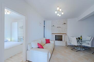 Ferienwohnung bietet Platz für 4 Gäste. Die Betten sind in Schlafzimmern, die es 2 gibt, innerhalb einer Gesamtfläche von 50m2, angeordnet. Die Gäste haben eine eigene Terrasse zur Verfügung, auf der sie in warmen Sommernächten genießen können. Das Apartment bietet Meerblick. Für vollen Genuss und Entspannung gibt es einen privaten Grill für Gäste dieser Unterkunft. In der Unterkunftseinheit besteht die Möglichkeit des Mitbringens von Haustieren, und die Dienstleistung ist im Preis der Unterkunft enthalten. Unterkunftseinheit hat Räume, die von dem Rest der Einheit abgetrennt werden.