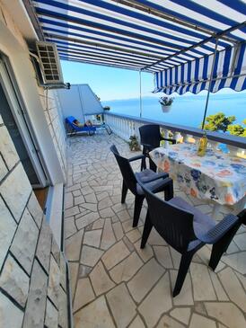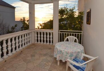 Ferienwohnung bietet Platz für 6 Gäste. Die Betten sind in Schlafzimmern, die es 3 gibt, innerhalb einer Gesamtfläche von 98m2, angeordnet. Die Gäste haben eine eigene Terrasse zur Verfügung, auf der sie in warmen Sommernächten genießen können. Das Apartment bietet Meerblick. Es ist erlaubt, Speisen auf dem Gemeinschafts-Grill vorzubereiten.