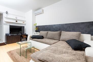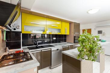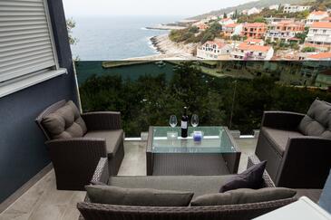 Ferienwohnung bietet Platz für 4 Gäste. Die Betten sind in Schlafzimmern, die es 2 gibt, innerhalb einer Gesamtfläche von 81m2, angeordnet. Die Gäste haben eine eigene Terrasse zur Verfügung, auf der sie in warmen Sommernächten genießen können. Das Apartment bietet Meerblick. Es ist erlaubt, Speisen auf dem Gemeinschafts-Grill vorzubereiten.