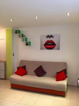 Ferienwohnung bietet Platz für 4 Gäste. Die Betten sind in Schlafzimmern, die es 2 gibt, innerhalb einer Gesamtfläche von 43m2, angeordnet. Die Gäste haben eine eigene Terrasse zur Verfügung, auf der sie in warmen Sommernächten genießen können. Das Apartment bietet Meerblick. Es ist erlaubt, Speisen auf dem Gemeinschafts-Grill vorzubereiten. In der gebuchten Unterkunftseinheit zahlt man am Ort ein Depositum ( der Preis ist an der Internetseite angeführt ).