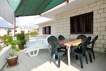 Ferienwohnung bietet Platz für 6 Gäste. Die Betten sind in Schlafzimmern, die es 3 gibt, innerhalb einer Gesamtfläche von 97m2, angeordnet. Die Gäste haben eine eigene Terrasse zur Verfügung, auf der sie in warmen Sommernächten genießen können. Das Apartment bietet Meerblick. Es ist erlaubt, Speisen auf dem Gemeinschafts-Grill vorzubereiten.