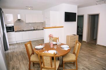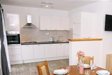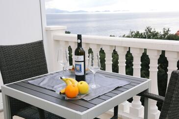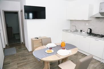 Ferienwohnung bietet Platz für 2 Gäste. Die Betten sind in Schlafzimmern, die es 1 gibt, innerhalb einer Gesamtfläche von 29m2, angeordnet. Die Gäste haben eine eigene Terrasse zur Verfügung, auf der sie in warmen Sommernächten genießen können. Das Apartment bietet Meerblick. Es ist erlaubt, Speisen auf dem Gemeinschafts-Grill vorzubereiten.