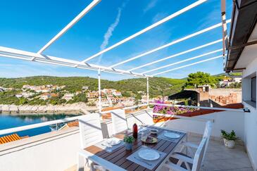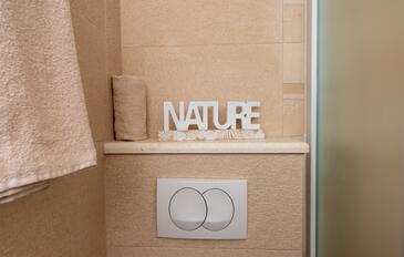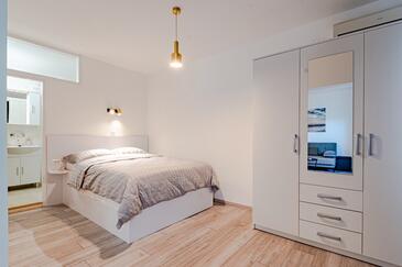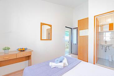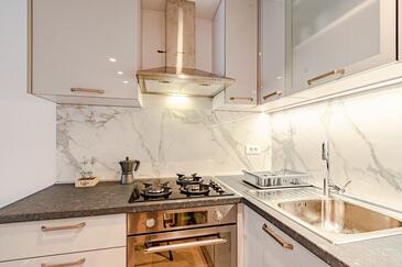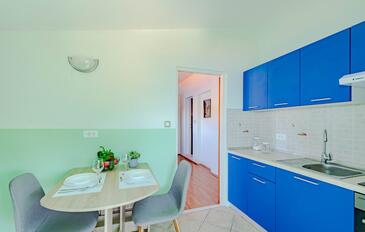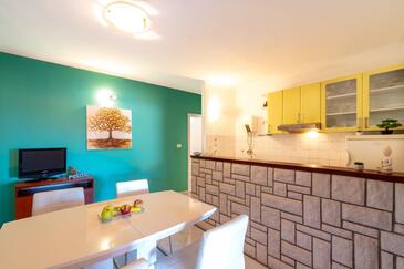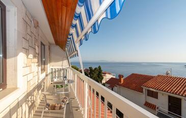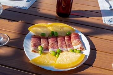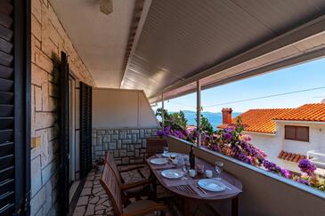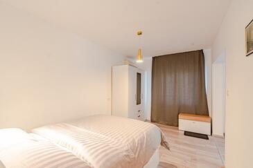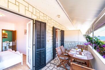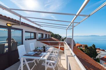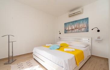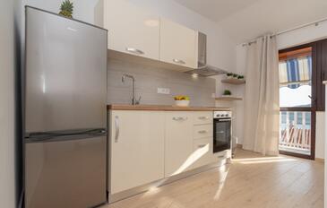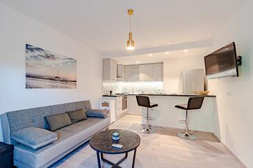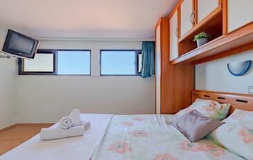Ferienwohnung bietet Platz für 4 Gäste. Die Betten sind in Schlafzimmern, die es 2 gibt, innerhalb einer Gesamtfläche von 46m2, angeordnet. Die Gäste haben eine eigene Terrasse zur Verfügung, auf der sie in warmen Sommernächten genießen können. Das Apartment bietet Meerblick. Es ist erlaubt, Speisen auf dem Gemeinschafts-Grill vorzubereiten.