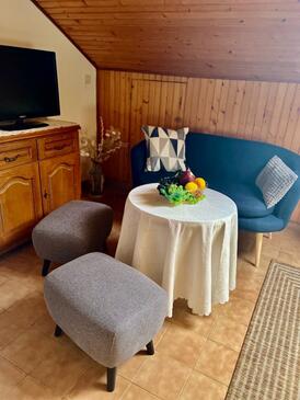 Ferienwohnung bietet Platz für 6 Gäste. Die Betten sind in Schlafzimmern, die es 2 gibt, und in Wohnzimmer, innerhalb einer Gesamtfläche von 64m2, angeordnet. Die Gäste haben eine eigene Terrasse zur Verfügung, auf der sie in warmen Sommernächten genießen können. Das Apartment bietet Meerblick. Es ist erlaubt, Speisen auf dem Gemeinschafts-Grill vorzubereiten.