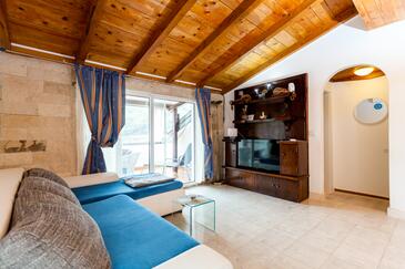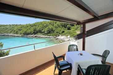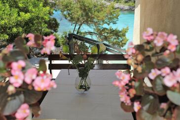 Ferienwohnung bietet Platz für 4 Gäste. Die Betten sind in Schlafzimmern, die es 2 gibt, innerhalb einer Gesamtfläche von 53m2, angeordnet. Die Gäste haben eine eigene Terrasse zur Verfügung, auf der sie in warmen Sommernächten genießen können. Das Apartment bietet Meerblick. Für vollen Genuss und Entspannung gibt es einen privaten Grill für Gäste dieser Unterkunft.