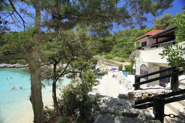 Ferienwohnung bietet Platz für 4 Gäste. Die Betten sind in Schlafzimmern, die es 2 gibt, innerhalb einer Gesamtfläche von 53m2, angeordnet. Die Gäste haben eine eigene Terrasse zur Verfügung, auf der sie in warmen Sommernächten genießen können. Das Apartment bietet Meerblick. Für vollen Genuss und Entspannung gibt es einen privaten Grill für Gäste dieser Unterkunft.