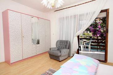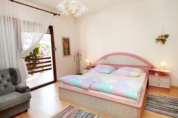 Ferienwohnung bietet Platz für 4 Gäste. Die Betten sind in Schlafzimmern, die es 2 gibt, innerhalb einer Gesamtfläche von 71m2, angeordnet. Die Gäste haben einen eigenen Balkon zur Verfügung, auf der sie in warmen Sommernächten genießen können. Das Apartment bietet Meerblick. Es ist erlaubt, Speisen auf dem Gemeinschafts-Grill vorzubereiten.