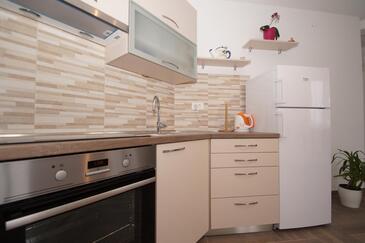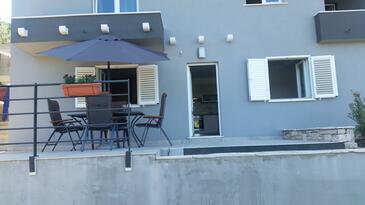Ferienwohnung bietet Platz für 3 Gäste. Die Betten sind in Schlafzimmern, die es 1 gibt, und in Esszimmer, innerhalb einer Gesamtfläche von 28m2, angeordnet. Die Gäste haben eine eigene Terrasse zur Verfügung, auf der sie in warmen Sommernächten genießen können. Das Apartment bietet Meerblick. Es ist erlaubt, Speisen auf dem Gemeinschafts-Grill vorzubereiten.