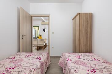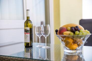 Ferienwohnung bietet Platz für 4 Gäste. Die Betten sind in Schlafzimmern, die es 2 gibt, innerhalb einer Gesamtfläche von 70m2, angeordnet. Die Gäste haben eine eigene Terrasse zur Verfügung, auf der sie in warmen Sommernächten genießen können. Es ist erlaubt, Speisen auf dem Gemeinschafts-Grill vorzubereiten.