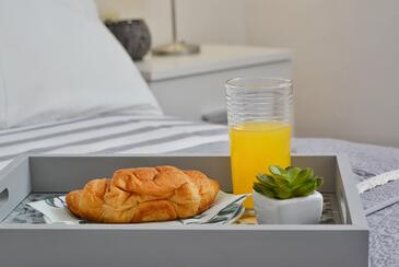 Ferienwohnung bietet Platz für 5 Gäste. Die Betten sind in Schlafzimmern, die es 3 gibt, innerhalb einer Gesamtfläche von 84m2, angeordnet. Die Gäste haben einen eigenen Balkon zur Verfügung, auf der sie in warmen Sommernächten genießen können. Das Apartment bietet Meerblick. Für vollen Genuss und Entspannung gibt es einen privaten Grill für Gäste dieser Unterkunft.