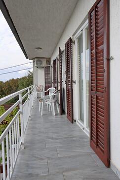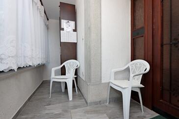 Ferienwohnung bietet Platz für 4 Gäste. Die Betten sind in Schlafzimmern, die es 2 gibt, innerhalb einer Gesamtfläche von 73m2, angeordnet. Die Gäste haben einen eigenen Balkon zur Verfügung, auf der sie in warmen Sommernächten genießen können. Das Apartment bietet Meerblick. Es ist erlaubt, Speisen auf dem Gemeinschafts-Grill vorzubereiten.