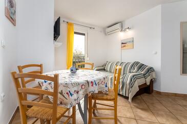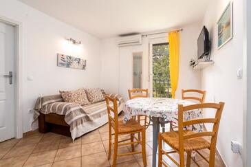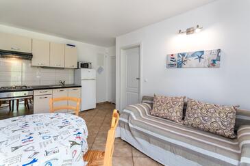 Ferienwohnung bietet Platz für 4 Gäste. Die Betten sind in Schlafzimmern, die es 2 gibt, innerhalb einer Gesamtfläche von 36m2, angeordnet. Die Gäste haben eine eigene Terrasse zur Verfügung, auf der sie in warmen Sommernächten genießen können. Es ist erlaubt, Speisen auf dem Gemeinschafts-Grill vorzubereiten. Durch die Terrasse der gebuchten Unterkunftseinheit gehen auch andere Gäste oder Vermieter.