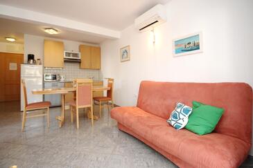 Ferienwohnung bietet Platz für 4 Gäste. Die Betten sind in Schlafzimmern, die es 2 gibt, innerhalb einer Gesamtfläche von 46m2, angeordnet. Die Gäste haben einen eigenen Balkon zur Verfügung, auf der sie in warmen Sommernächten genießen können. Das Apartment bietet Meerblick. In der Unterkunftseinheit besteht die Möglichkeit des Mitbringens von Haustieren gegen Aufpreis.