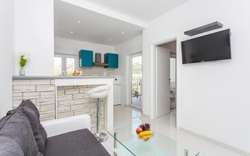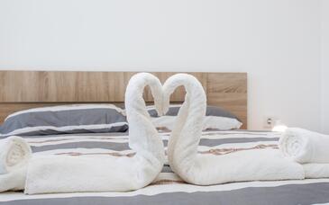 Ferienwohnung bietet Platz für 3 Gäste. Die Betten sind in Schlafzimmern, die es 1 gibt, und in Wohnzimmer, innerhalb einer Gesamtfläche von 35m2, angeordnet. Die Gäste haben eine eigene Terrasse zur Verfügung, auf der sie in warmen Sommernächten genießen können. Es ist erlaubt, Speisen auf dem Gemeinschafts-Grill vorzubereiten.