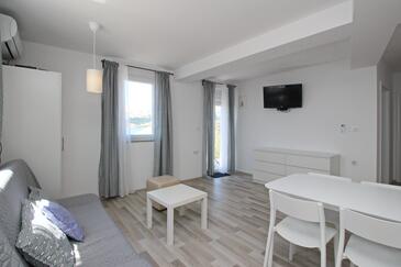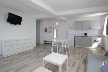Ferienwohnung bietet Platz für 6 Gäste. Die Betten sind in Schlafzimmern, die es 2 gibt, und in Wohnzimmer, innerhalb einer Gesamtfläche von 60m2, angeordnet. Die Gäste haben eine eigene Terrasse zur Verfügung, auf der sie in warmen Sommernächten genießen können. Das Apartment bietet Meerblick. In der Unterkunftseinheit besteht die Möglichkeit des Mitbringens von Haustieren gegen Aufpreis.