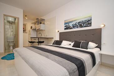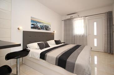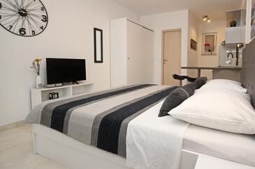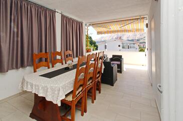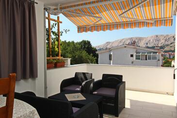 Ferienwohnung bietet Platz für 6 Gäste. Die Betten sind in Schlafzimmern, die es 3 gibt, innerhalb einer Gesamtfläche von 65m2, angeordnet. Die Gäste haben eine eigene Terrasse zur Verfügung, auf der sie in warmen Sommernächten genießen können.
