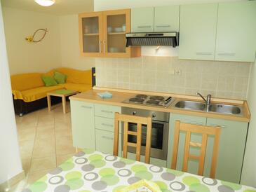 Ferienwohnung bietet Platz für 4 Gäste. Die Betten sind in Schlafzimmern, die es 1 gibt, und in Wohnzimmer, innerhalb einer Gesamtfläche von 40m2, angeordnet. Die Gäste haben eine eigene Terrasse zur Verfügung, auf der sie in warmen Sommernächten genießen können. Es ist erlaubt, Speisen auf dem Gemeinschafts-Grill vorzubereiten. In der Unterkunftseinheit besteht die Möglichkeit des Mitbringens von Haustieren gegen Aufpreis.