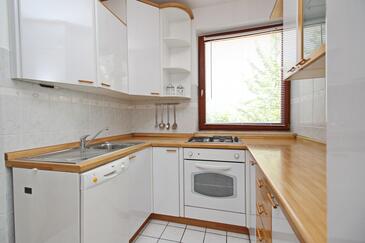 Ferienwohnung bietet Platz für 4 Gäste. Die Betten sind in Schlafzimmern, die es 2 gibt, innerhalb einer Gesamtfläche von 52m2, angeordnet. Die Gäste haben eine eigene Terrasse zur Verfügung, auf der sie in warmen Sommernächten genießen können. Es ist erlaubt, Speisen auf dem Gemeinschafts-Grill vorzubereiten.