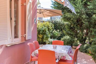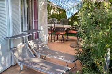 Ferienwohnung bietet Platz für 6 Gäste. Die Betten sind in Schlafzimmern, die es 2 gibt, und in Wohnzimmer, innerhalb einer Gesamtfläche von 64m2, angeordnet. Die Gäste haben eine eigene Terrasse zur Verfügung, auf der sie in warmen Sommernächten genießen können. Für vollen Genuss und Entspannung gibt es einen privaten Grill für Gäste dieser Unterkunft.