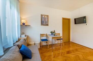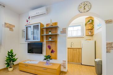 Ferienwohnung bietet Platz für 4 Gäste. Die Betten sind in Schlafzimmern, die es 1 gibt, und in Wohnzimmer, innerhalb einer Gesamtfläche von 32m2, angeordnet. Die Gäste haben eine eigene Terrasse zur Verfügung, auf der sie in warmen Sommernächten genießen können. Es ist erlaubt, Speisen auf dem Gemeinschafts-Grill vorzubereiten. Während ihres Aufenthalts können Gäste das gemeinsam zur Nutzung stehende Schwimmbad benutzen.