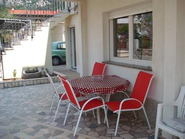 Ferienwohnung bietet Platz für 5 Gäste. Die Betten sind in Schlafzimmern, die es 2 gibt, und in Wohnzimmer, innerhalb einer Gesamtfläche von 66m2, angeordnet. Die Gäste haben eine eigene Terrasse zur Verfügung, auf der sie in warmen Sommernächten genießen können. Es ist erlaubt, Speisen auf dem Gemeinschafts-Grill vorzubereiten.