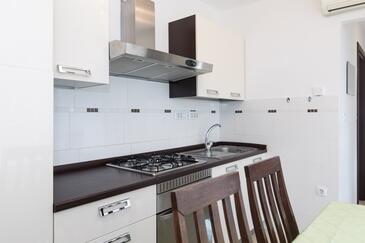 Ferienwohnung bietet Platz für 5 Gäste. Die Betten sind in Schlafzimmern, die es 2 gibt, innerhalb einer Gesamtfläche von 41m2, angeordnet. Die Gäste haben eine eigene Terrasse zur Verfügung, auf der sie in warmen Sommernächten genießen können.